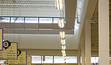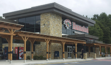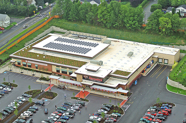 Hannaford Brothers Grocery Store The design challenge for this new low-energy, daylit full service grocery store was to take the simple “box” store and transform it in a way which directly addressed both its environmental impact and use by customers and employees. From an energy-based approach, the solution was to capture the wasted equipment energy associated with a typical supermarket and direct it back into the building. In an effort for site remediation, 50% of the site has been restored from a brownfield by using native adaptive plant species and meadow cover. The project focused on reducing the urban heat island effect by covering the roof with a white TPO membrane and over 7,000 square feet of a vegetative roof system, as well as through the site selection of light colored paving, sidewalks, and shading from a trellis and trees. Deep roof overhangs, interior and exterior fixed and operable shading and light shelves were designed to prevent direct solar contact on the products, reflect solar gains and to maintain views with the use of micro-perforated screens and horizontal exterior awnings. The Hannaford Augusta store achieved LEED Platinum certification under the LEED for Retail pilot program. The new store will be a laboratory for the company to test new innovations that lower energy use, waste and water consumption. The project incorporates green design features including daylighting, solar photovoltaic panels, geothermal heating and cooling, high efficiency refrigeration, waste heat recovery, energy efficient lighting and an advanced recycling program. |
