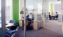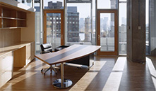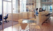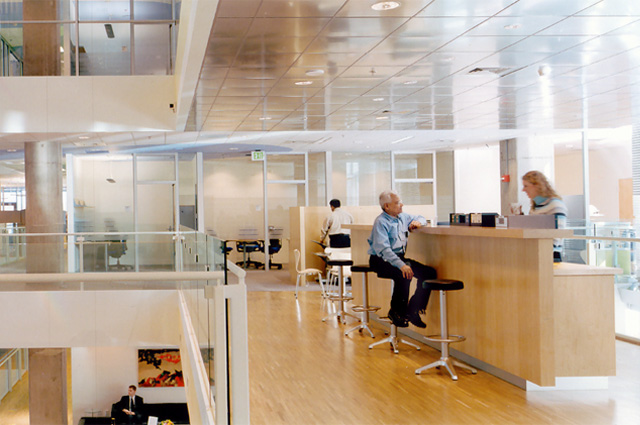 Office Layout & Furniture Design We developed a line of office furniture with the manufacturers VS (Vereinigte Spezialmoebelfabriken-Tauberbischofsheim, Germany) and Steelcase especially for the Genzyme Center.The design was focused on optimized workstations: efficient use of space combined with open and generous layouts that allow the best use of daylight and ergonomic features like height adjustable desks and easy proximities. The goal was to create a comprehensive and flexible, integrated furniture line for 'cubicles' and closed offices. The design of the various components, mainly the cubicle, desk and shelving started in conjunction with the European manufacturer VS. The design was completed and executed by Steelcase in the US. This was a very interactive design and technical process, with clear leadership from the architects. Steelcase made efforts to match the established design criteria and finally delivered a unique product line which shows a new approach priced competitively with their standard products. Public areas like Lecture Hall, Conference, Kitchenettes, Lobbies, Garden and Break-out area and Cafeteria were designed with classic, modern elements, furniture and detail in support of the integrated open three dimensional space of the Atrium. There are specialty areas with custom furniture and fit-out such as reception area and lecture hall designed by the team. The CEO suite, executive conference area and Boardroom were specifically designed and then built by VS.