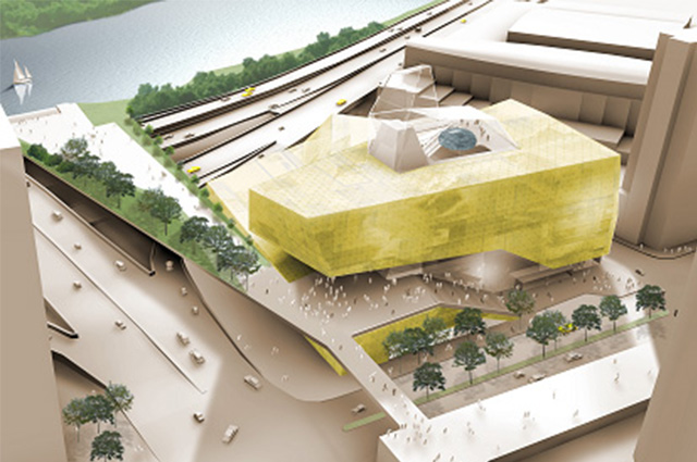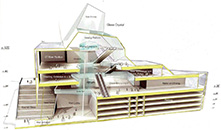 Connecticut Science Center The Connecticut Center for Science and Exploration was envisioned as an urban gateway and a landmark for the city of Hartford well connected to the city, the new convention center, and river. The building form and pedestrian movements were designed to incorporate the urban fabric outside with a city sculpture and inside with landscaped terraces which create a multitude of vantage points to view the city from within. Vertical integration of mixed uses such as exhibit galleries, theaters, classrooms and research labs will enrich Hartford's urban development by drawing the public through the Science Center as a node for further exploration. . |