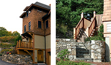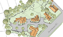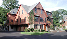 Parkside Village The design requirement was to design a small cluster or village for a blighted, infill site that had lost existing structures to arson. Located next to Frederick Law Olmstead's Franklin Park, the project required significant historic and neighborhood approvals and collaboration. The design result is comprised of four buildings housing 12 units sensitively integrated into the steep, rocky site. While the building's environmental performance is very high, the use of natural materials, Arts and Crafts details and the careful siting weaves the modern project into its historic context and setting. The new village has received wide support from the community and provides integrated affordable housing. Sustainable strategies including natural daylighting and 8" staggered stud walls with panelized construction combined with a carefully detailed envelope provide energy efficiency and durability. Site contours and landscape elements were used to enhance the overall sense of scale, provide private outdoor spaces for each unit, minimize the impact of a centralized parking court, and to completely control on-site storm water. |