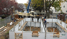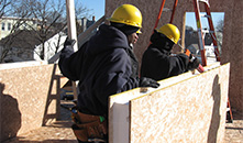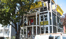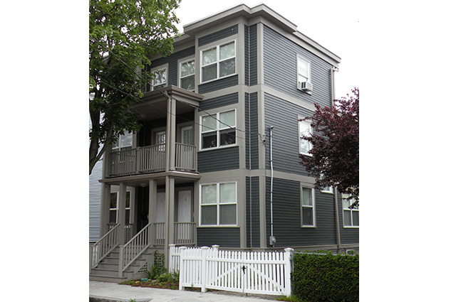 Arbutus Street Residence [Prototype LEED Housing] The project at 26 Arbutus Street is a prototype house providing an example of environmentally friendly, energy efficient affordable housing. The project was completed in cooperation with Boston's Youth Build program to help train at risk youths in green construction. Next Phase Studios worked closely with the Department of Neighborhood Development (DND) and Youth Build on this LEED prototype for low income, two-family homes. To reduce construction waste and facilitate ease of assembly, a modular ICF foundation, stress skin panel system with modular SIPS, and a truss system constructed from recycled post-industrial wood were utilized. Overall, a high performance R45 wall, R65 roof, and quality fiberglass windows compose an energy efficient envelope. This project is LEED Gold Certified. |