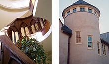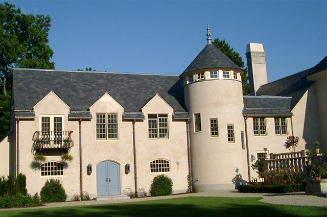 | Residential | Essex Road Residence A signifi cant addition/ renovation to an extraordinary historic period house. The crux of the project was integrating a large addition without adversely comprimising the magnifi cent existing home and layout. The solution was a modernist plan encased in a complimentary exterior. The new garage, gallery, exercize, and guest suite are pulled off the main house. The connection is made integral at an existing stair. The space between is enclosed, transforming it into a garden court. Several architectural artifacts further the embodied history of the interior/ exterior qualities of the new spaces. The attitude toward fi nishes range in character from paying homage to the original to incorporating a very modern aesthetic. This interplay of new and old in the addition and the connection to this powerful house and its surrounding landscape integrate the site and the architecture. |