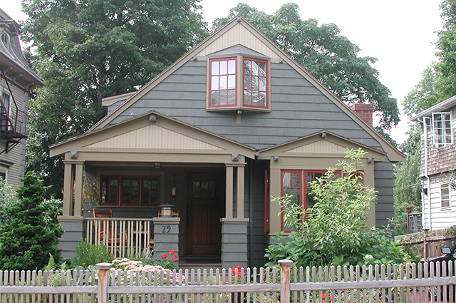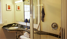 | Residential | Alveston Residence This attic conversion uses a variety of strategies to create an elegant bedroom suite within the existing envelope of a small cottage house on Sumner Hill in Jamaica Plain. A modest budget required effective and creative design strategies that include new skylights and a bay window to add natural daylight. Built-in storage saves valuable square footage and adds a charming craftsman-style character to the space. The strong single gesture of a free-form granite countertop unifi es the elements of the bath renovation; a glass shower and repetitive mirrors add depth and a feeling of spaciousness. |