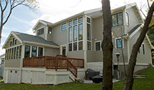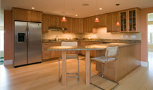 | Residential | Arborview Residence The Arborview residence is an addition/ renovation project in which the individual identities of the clients have come together to shape the former 1950's ranch style house into and Arts and Crafts home on the top of Moss Hill. The goal of building more space without imposing on the street front and the desire to create a "not so big" house resulted in overlapping spaces based on precise programming. The addition sits on the back of the existing volume and "inhabits the roof" in a traditional Arts and Crafts style approach. A glazed twostory volume and stair lends graciousness to a modest dining area and brings daylight to the adjoining chef's kitchen. Other features include an accessible in-law suite on the first floor and a "weather station" seating area with views to the surrounding landscape from the second floor bedroom. |
