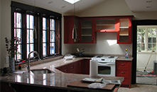 | Residential | Framar Road Residence A difficult addition renovation to a beautifully detailed Arts and Crafts home that was cramped, badly connected to the site and very dark on the interior. The goal was to integrate new, larger spaces and windows while adhering to the strong historic and design character of the existing building. The detailing and project specific details add charm and continuity, while the layout and windows dramatically change the character of the plan and the quality of the interior spaces and light. The new patio is an extension of the family Room and kitchen and functions as an outdoor room that connects to home to the gardens and yard.. |